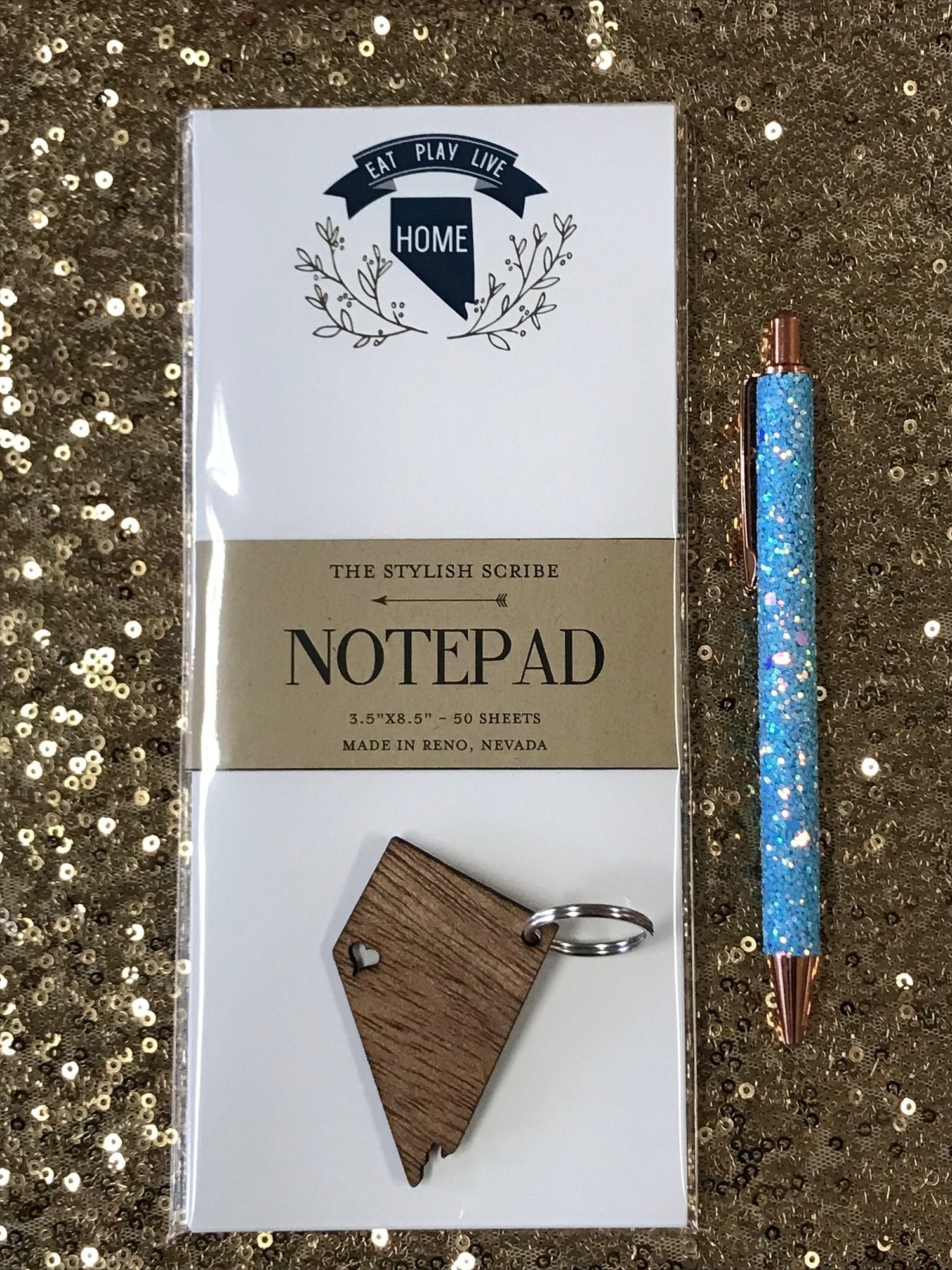 Beautiful handmade Notepad with the Nevada shape and Banner.